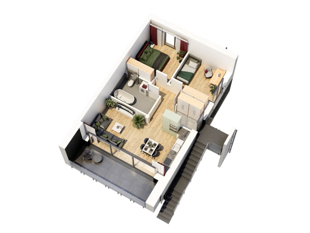 Nasza oferta składała się z 4 mieszkań, zlokalizowanych w dwóch budynkach jednorodzinnych w zabudowie bliźniaczej, wznoszonych na działce o powierzchni blisko 20 arów. Jest to drugi etap większej inwestycji – od strony północnej stoi już podobny budynek, którego budowa zakończyła się w 2023 roku. Realizując tak kameralną inwestycję, od początku przykładaliśmy szczególną wagę do zaprojektowania i wybudowania komfortowych i funkcjonalnych mieszkań. Każde mieszkanie posiada niezależne wejście z zewnątrz. Duże okna od strony południowej zapewniają potężne doświetlenie salonów z aneksami kuchennymi. Układ ścian pozwala na wygodne zamontowanie szaf wnękowych. Każde mieszkanie posiada wygodny, duży balkon (taras).
