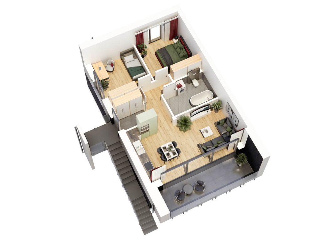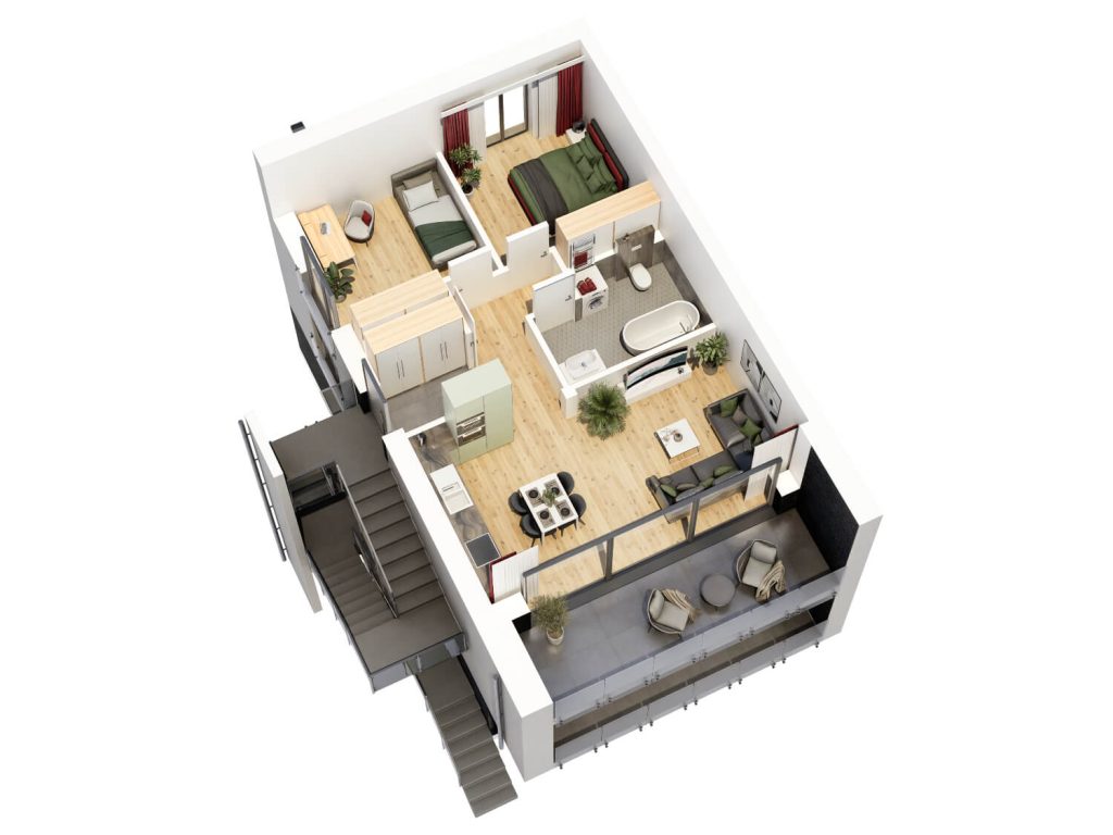Oferujemy mieszkania, a nie domy, ale charakter budynku sprawia, że mieszkańcy będą mieli dostęp do własnej działki wokół budynku. Wspólnota, która powstanie, będzie mogła zagospodarować działkę według swobodnej woli właścicieli, współtworząc przestrzeń do rekreacji, zabawy, uprawy roślin…